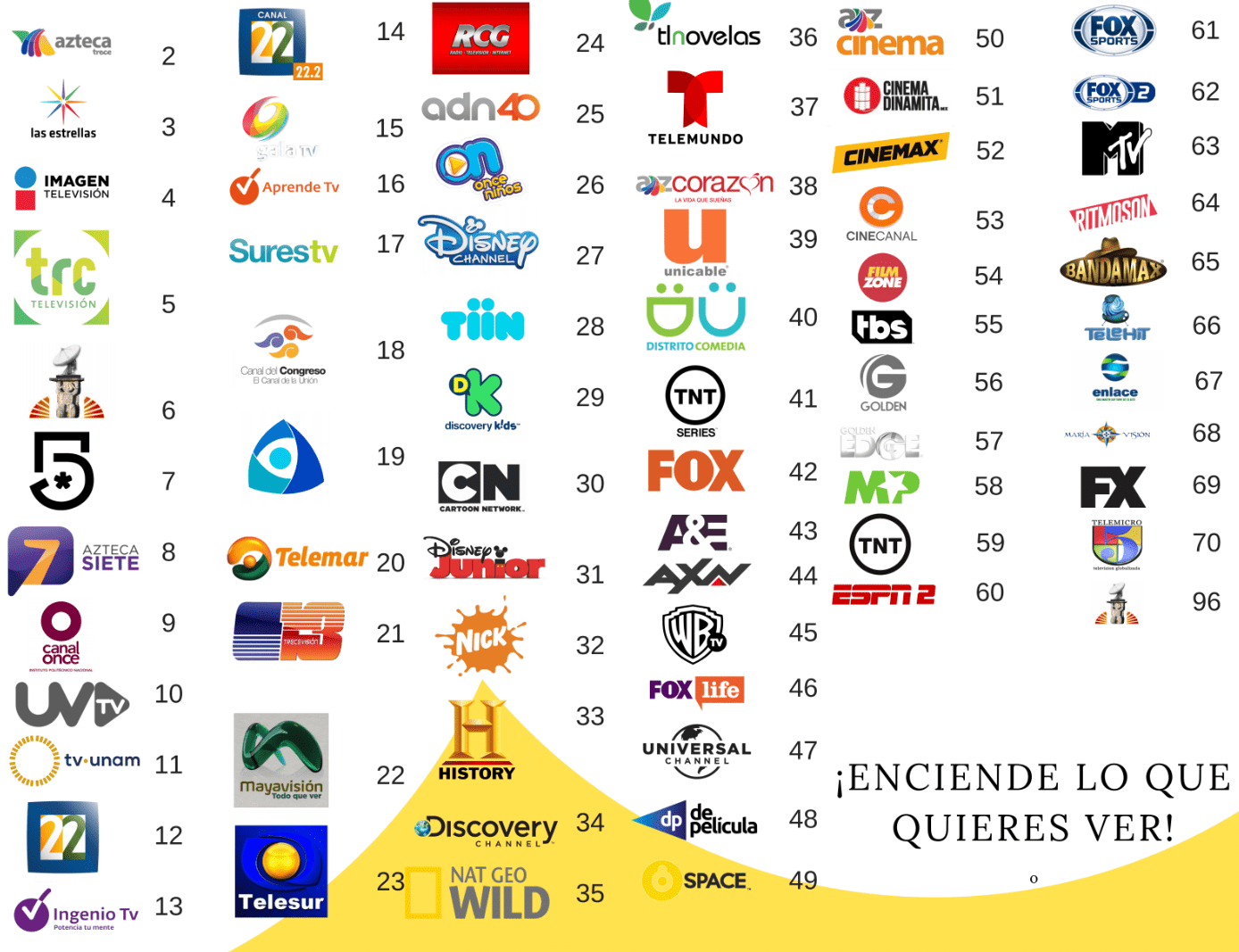 Disfruta de nuestros 70 canales. ¡Enciende lo que quieres ver!
